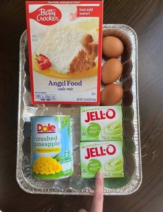 This Pistachio Pineapple Cake is a light, airy dessert with a bright tropical twist—and it couldn’t be easier to prepare. A soft angel food cake base is infused with nutty pistachio flavor and sweet crushed pineapple, creating a moist, flavorful crumb. Finished with a simple, creamy topping and a sprinkle of chopped pistachios, it’s as pretty as it is delicious. Perfect for potlucks, holidays, or any time you want an easy, crowd-pleasing dessert