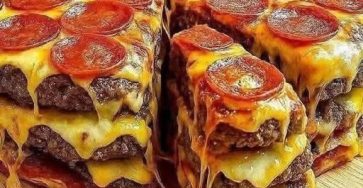 Ultimate Double Cheeseburger Pizza Stack Description: This dish is a mashup masterpiece — two cheesy pizzas layered with juicy burger…